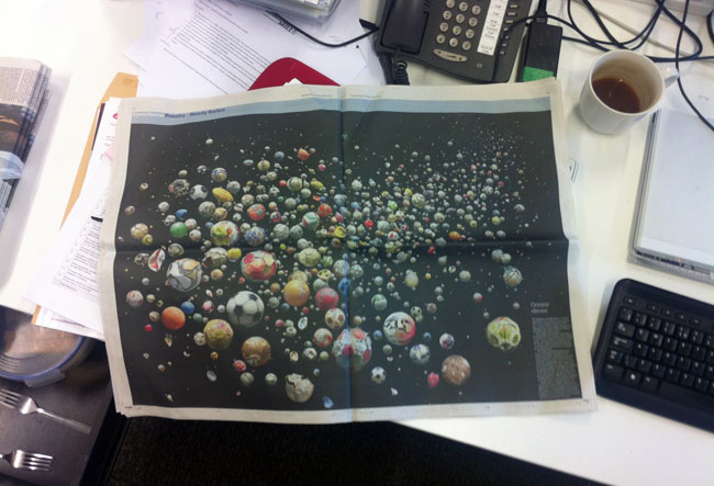 Et voilà que le 9 mai 2014, ce joli ballon, échoué sur un îlet en Guadeloupe, se retrouve avec d'autres ballons du monde entier sur la page centrale de The Guardian puis dans de nombreuses expositions à travers le monde.